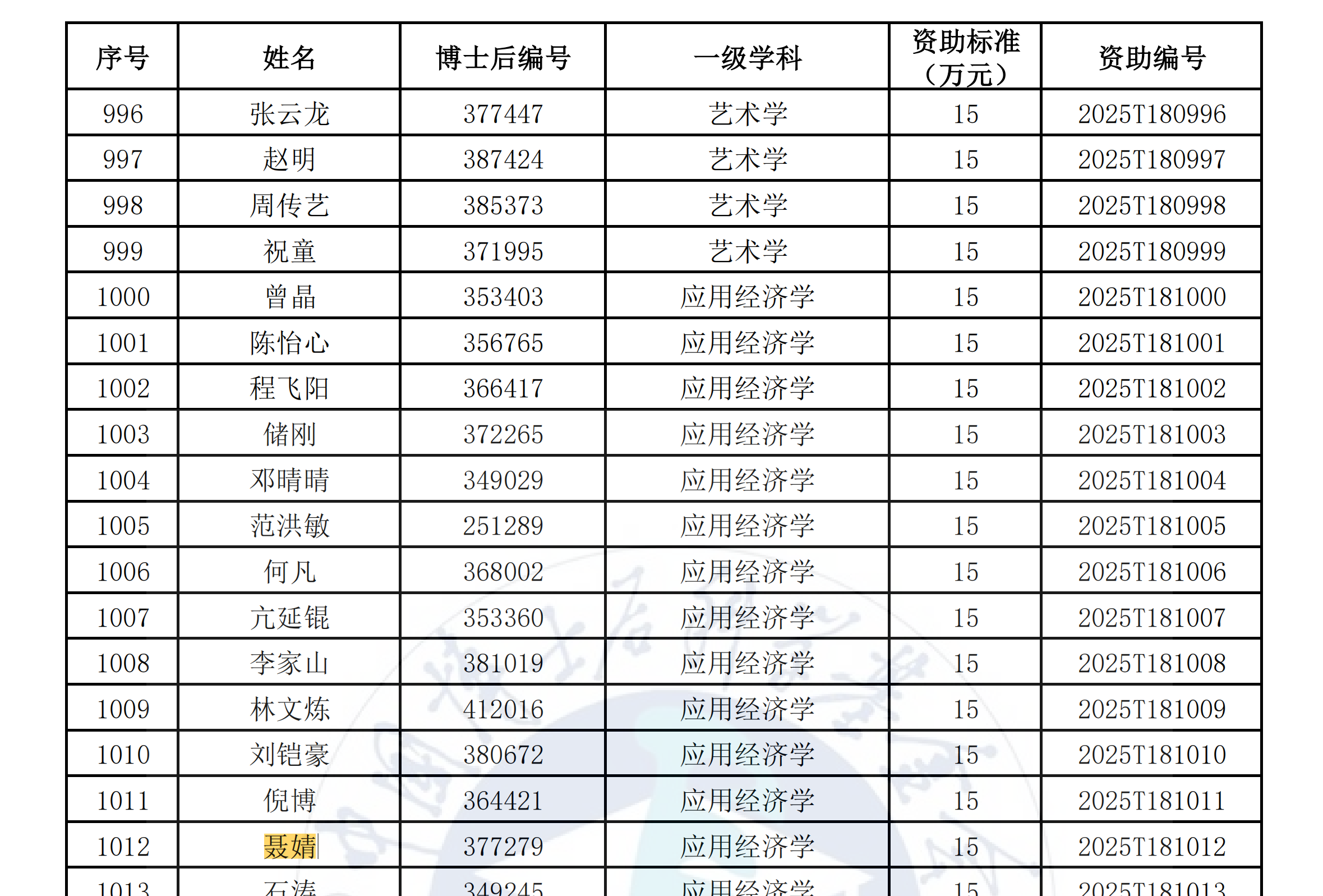 2025-08喜报!我校博士后聂婧获中国博士科学基金特别资助
